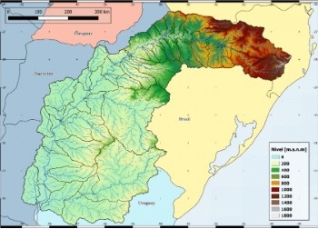 Volviendo un instante a la Cuenca del Río Uruguay, podrán apreciar que, en la referencia altimétrica indicada, se tienen importantes alturas en la parte alta de la Cuenca ubicada en Brasil y, en su pase por las Provincias de Corrientes y Entre Ríos, las alturas son propias de una llanura, con consecuente comportamiento del río.
