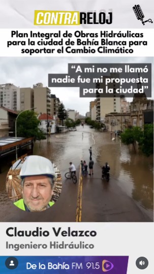 Televisión y RadioRadio de la Bahía: Plan Integral de Obras Hidráulicas para la ciudad de Bahía Blanca para soportar el Cambio Climático Ingeniero Claudio Velazco7 meses atrás7 meses atrás01 minutos Comparte esto: Compartir en X (Se abre en una ventana nueva) X Comparte en Facebook (Se abre en una ventana nueva) Facebook Me gusta esto:Me gusta Cargando... Relacionado Navegación de entradas Anterior: El país: Bahía Blanca, la ciudad argentina que busca reinventarse tras una inundación mortalSiguiente: Si los bonaerenses «cagamos en tacho», es porque nos robaron un equivalente a 46 mil millones de dólares de coparticipación Deja un comentarioCancelar respuesta